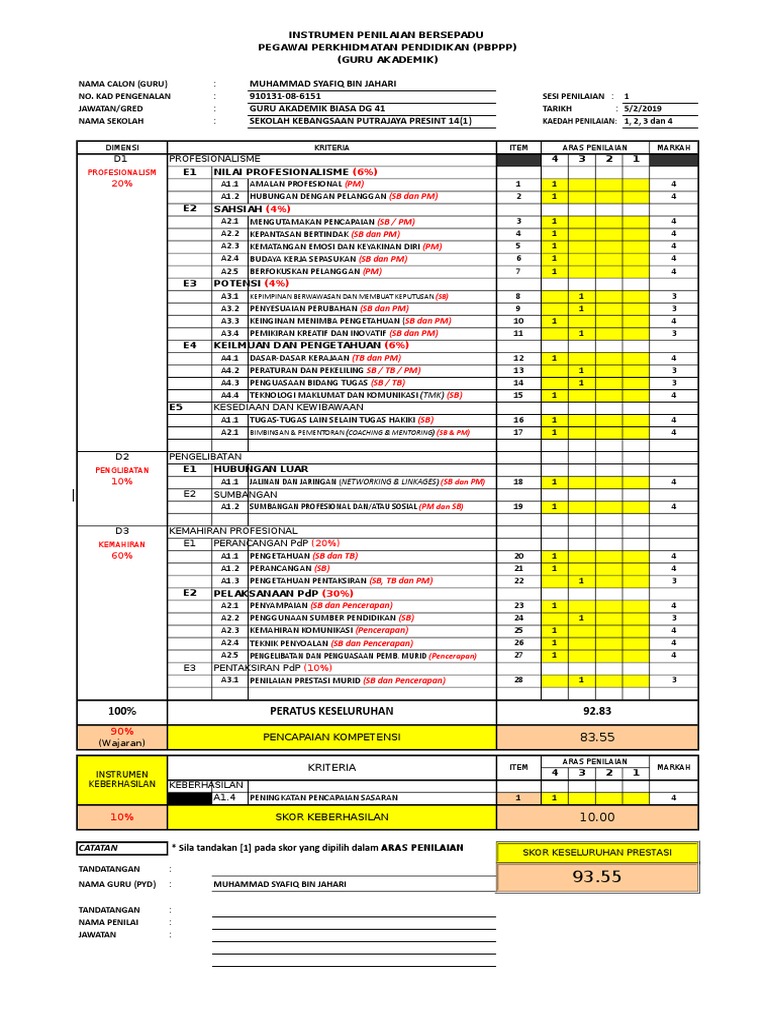Cikguk5 Markah Prestasi Hak Sebagai Pegawai Yang Dinilai Pyd